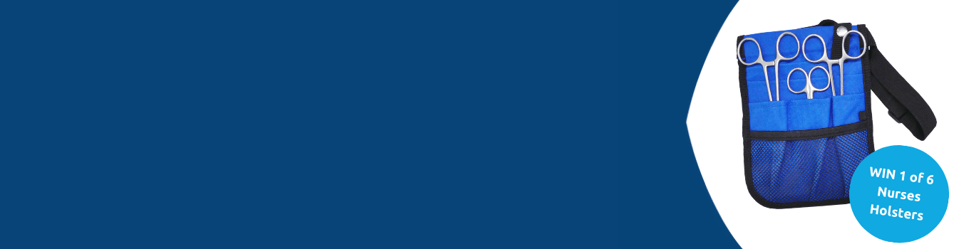 We are giving away 6 nurses’ holsters which include both curved and straight forceps & scissors in each holster. All you have to do is answer the question below and enter your contact details for your chance to win one of our holsters.