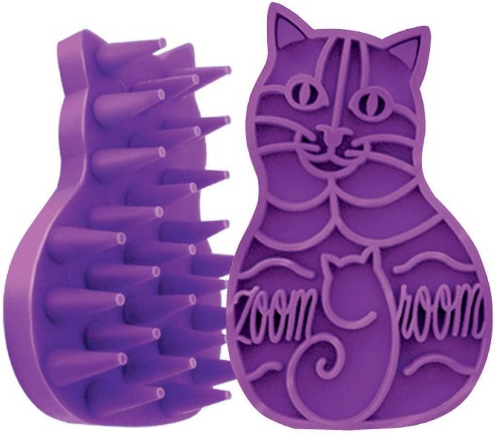 The Kong ZoomGroom for Cats massages and grooms at the same time.
