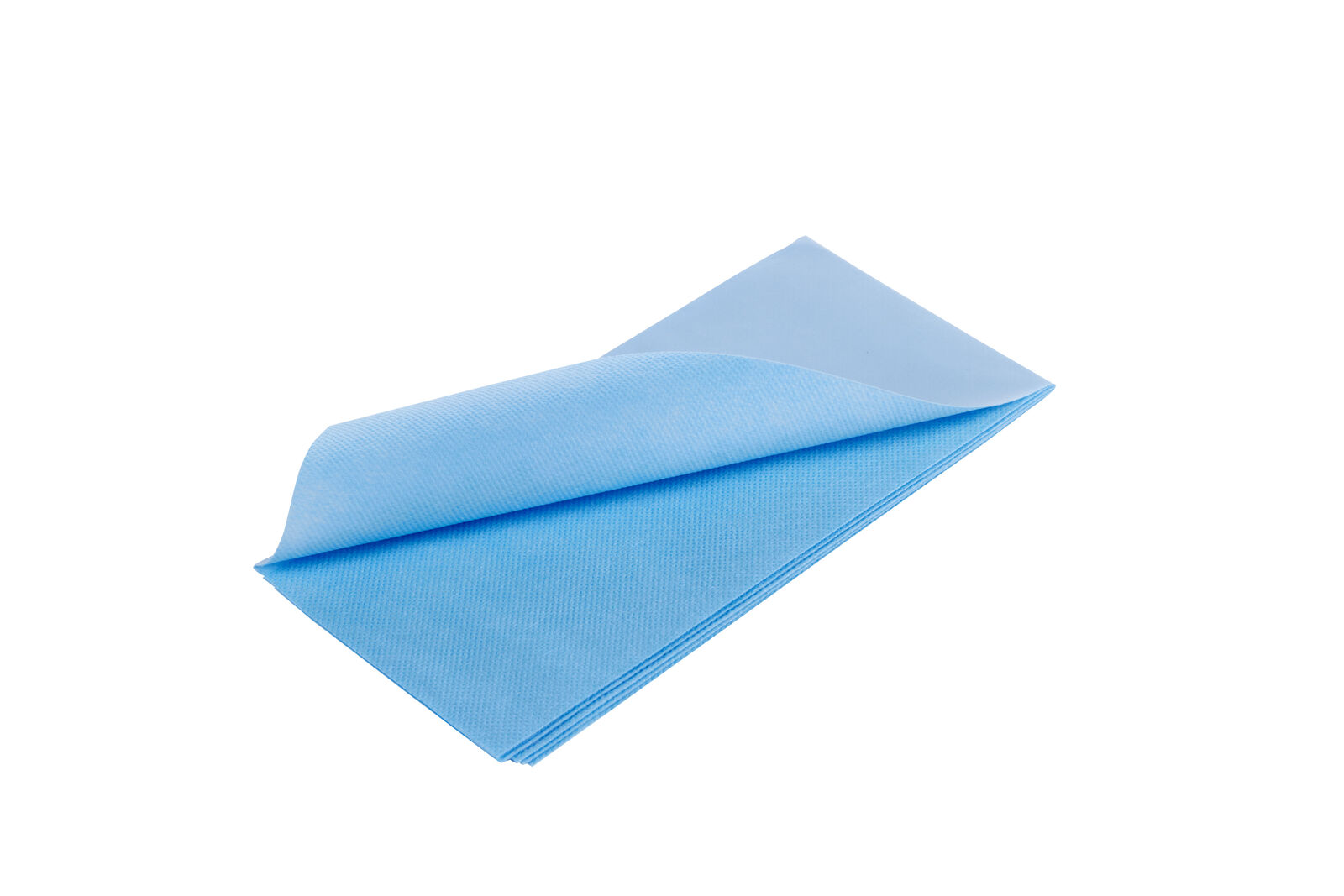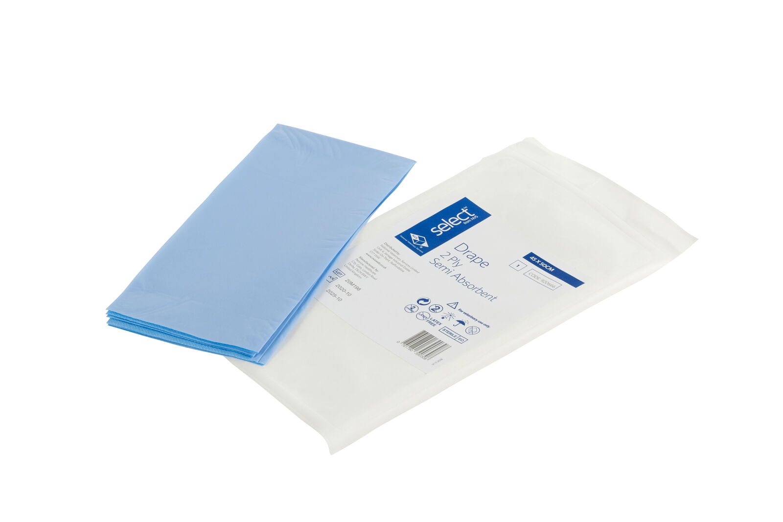 Lightweight, semi absorbent, bi-laminate drapes with surface absorbency to prevent immediate run off, backed with an effective non-permeable layer that provides a barrier for fluids and bacteria.