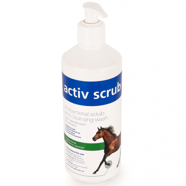 Activ Scrub is an antibacterial scrub and cleansing wash, ideal for removing bacteria, dirt and contamination. Effective in seconds, Activ Scrub is supplied in a conveniently sized 500ml pump bottle for ease of use, especially in colder conditions. Suitable undiluted for topical cleansing and as an antibacterial hand wash. Can be used diluted as a general wash. Approved for both human and animal application. Tested to EN1276, EN1650 and EN1327.
