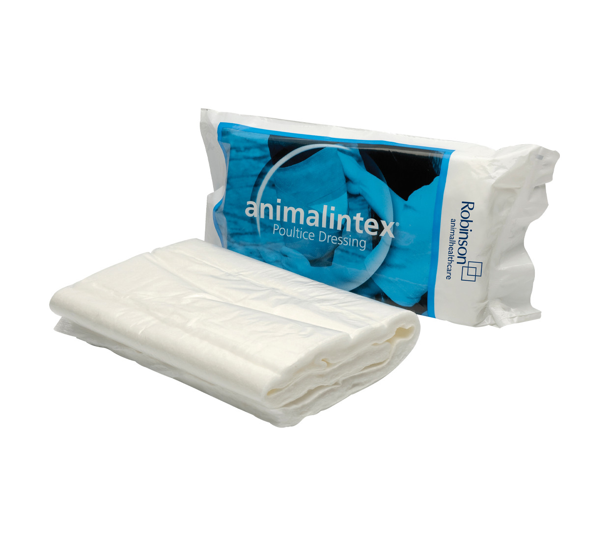 Animalintex is the original and only licensed absorbent multi-layered poultice and wound dressing available. It can be used as a hot poultice, cold poultice or dry dressing and is suitable for the treatment of infected wounds, open wounds, foot punctures, corns, bruised soles, thrush, seedy toe, abscesses, laminitis, sandcracks and thorns. Suitable for horses and dogs, the dressing contains Boric Acid BP, an active ingredient which promotes effective healing, plus tragacanth, a natural poulticing agent that draws infection out of the wound.
