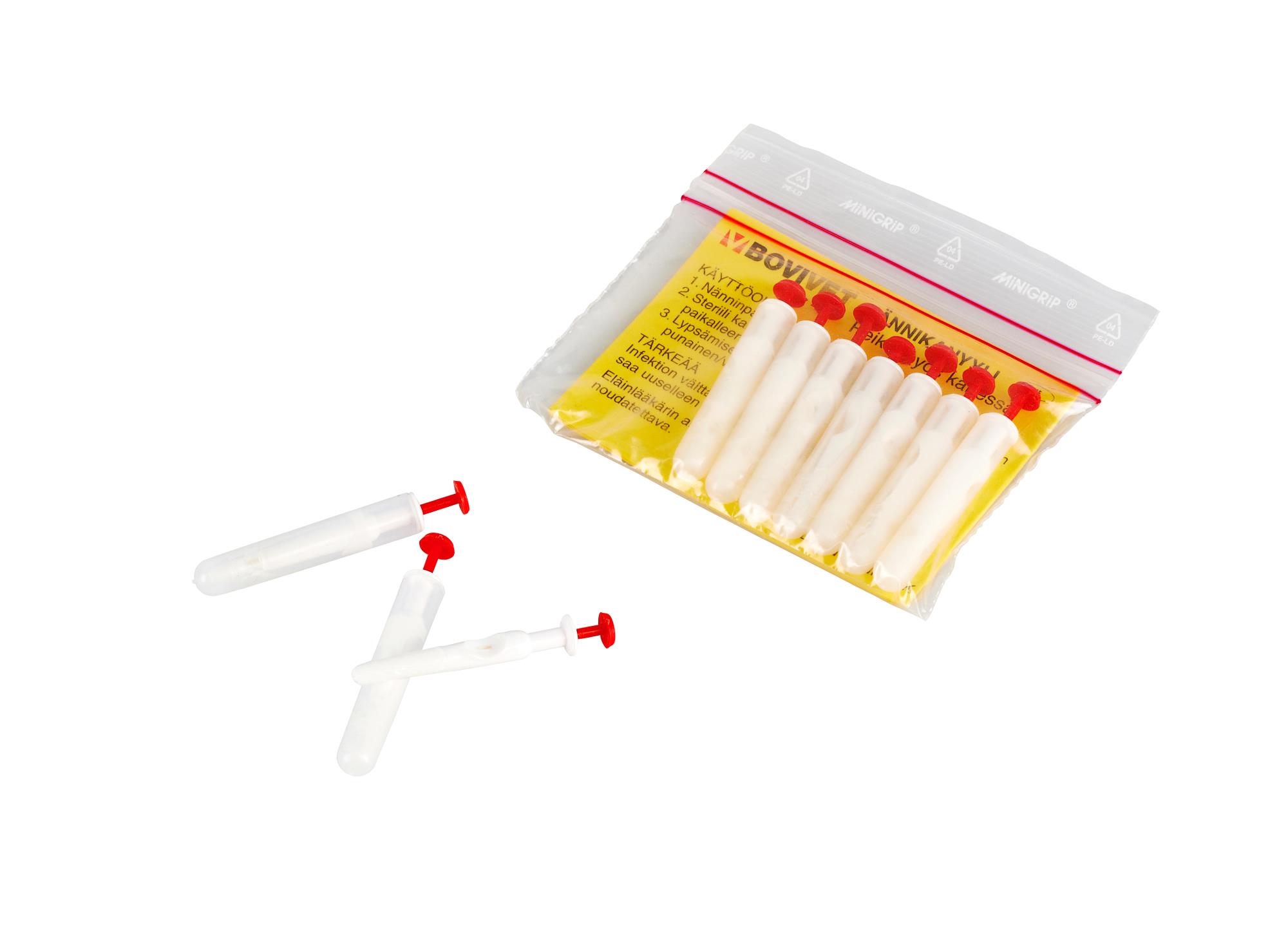 Diam. 5.5 mm, length 35 mm, individually packed in plastic tube with lubricating gel, red obdurator to be removed when milking.