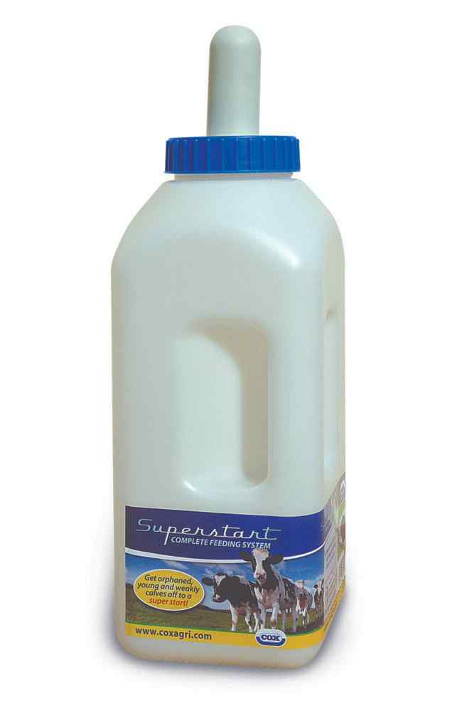 Superstart 2.5L calf feeding bottle is a robust traditionally shaped bottle with the addition of a formed handle to make calf feeding easier.