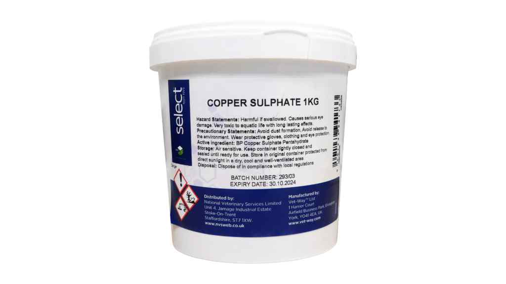 Copper sulphate BP is used widely in the farming and veterinary industries.