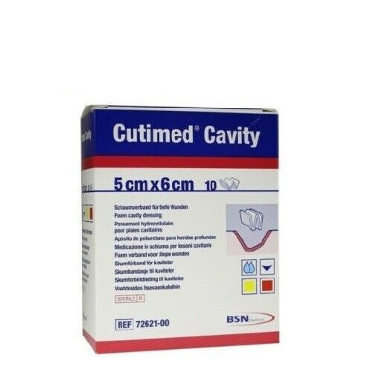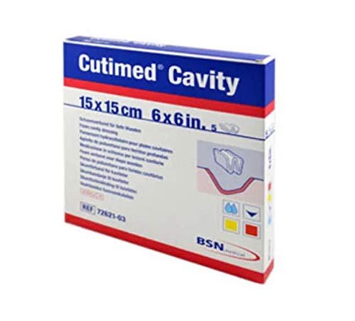 Cutimed Cavity is a sterile foam dressing made from hydrophillic, absorbent micro-porous polyurethane foam. It is soft, highly absorbent and conformable, creating the ideal environment for moist wound healing. The dressings can be cut to fit the wound.