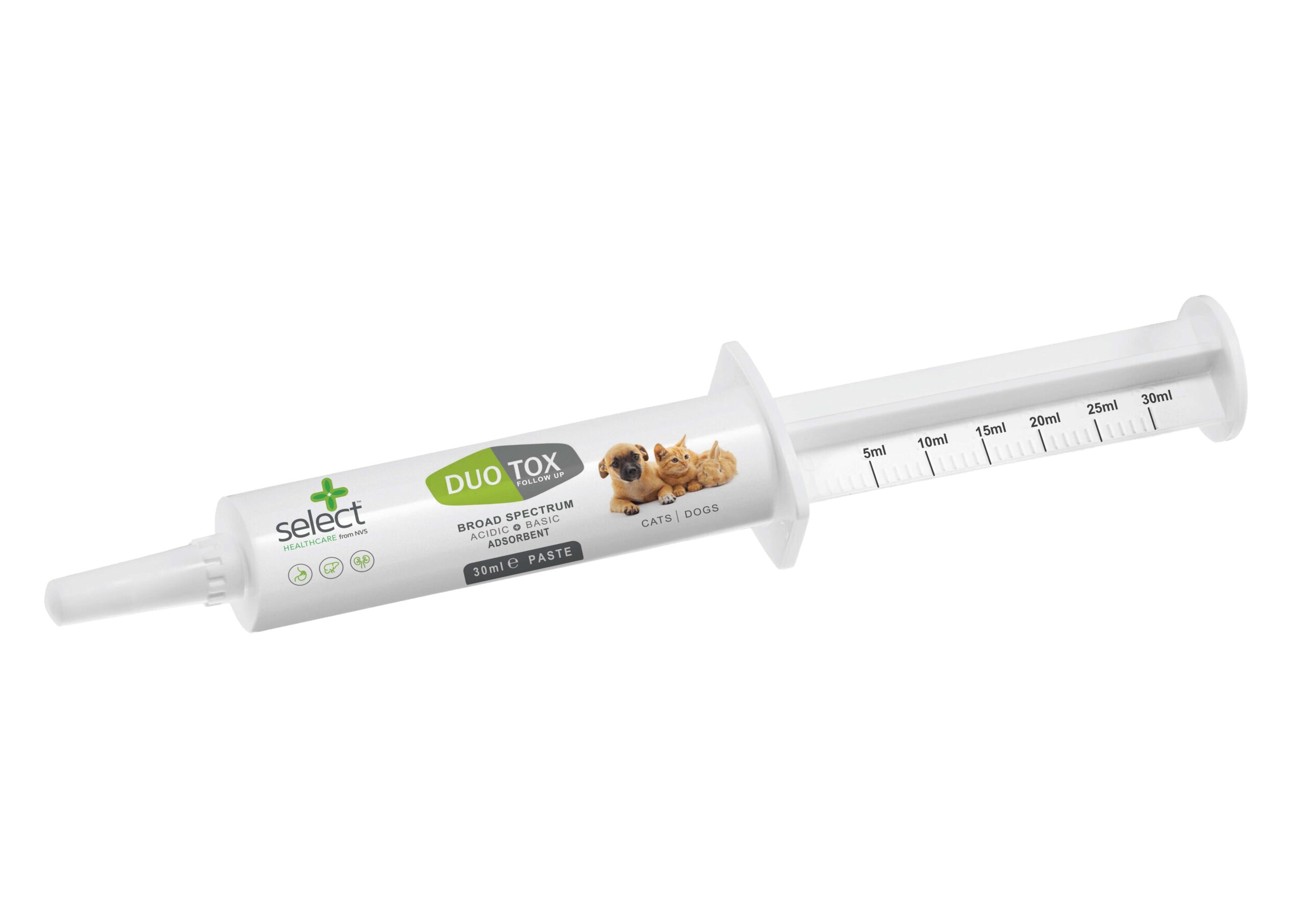 Duotox is a broad spectrum toxin binder containing a combination of activated charcoal and diosmectite.