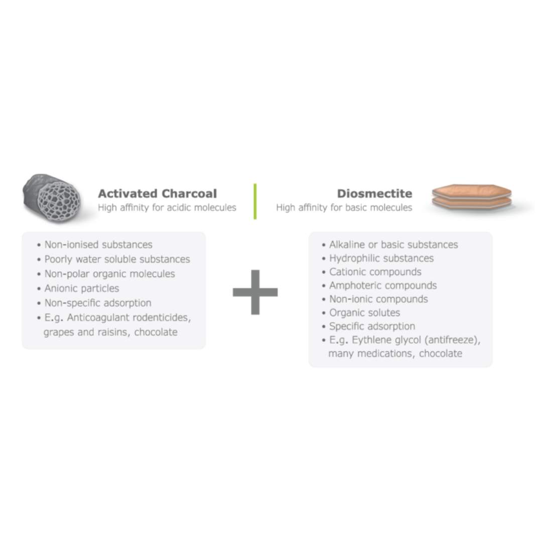 - Activated Charcoal (AC) and Diosmectite are powerful absorbents which help maintain normal gut health.
