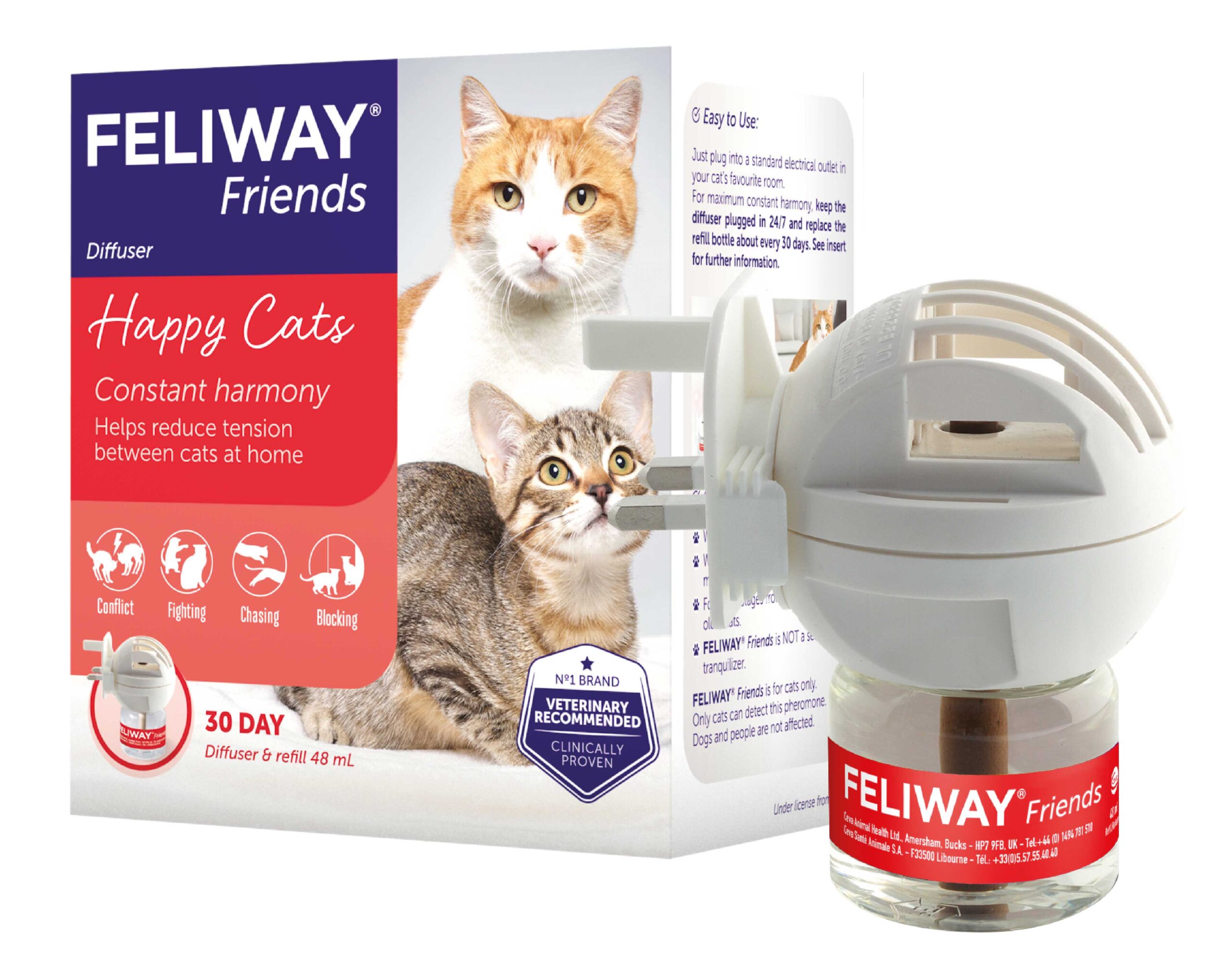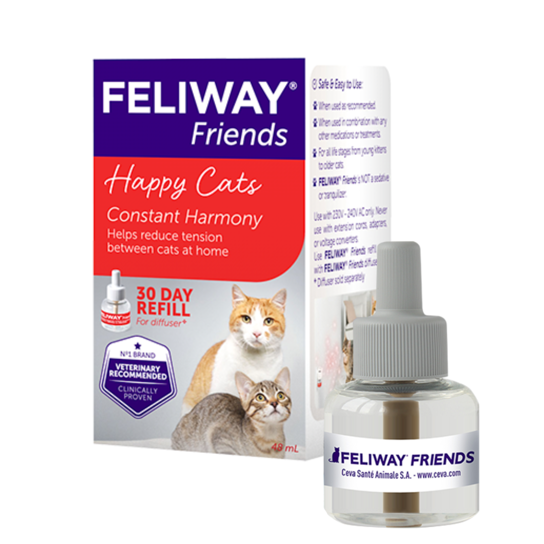 FELIWAY Friends helps to reduce conflict between cats living together, and prevent signs like fighting, chasing, blocking, staring. Helps your cats get along better at home. When used continuously it helps to maintain constant harmony. Clinically proven and veterinary recommended.