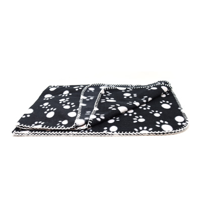 Fleece pet blanket. Features Soft Size: 100 x 70cm Colour: Black with White Pawprints