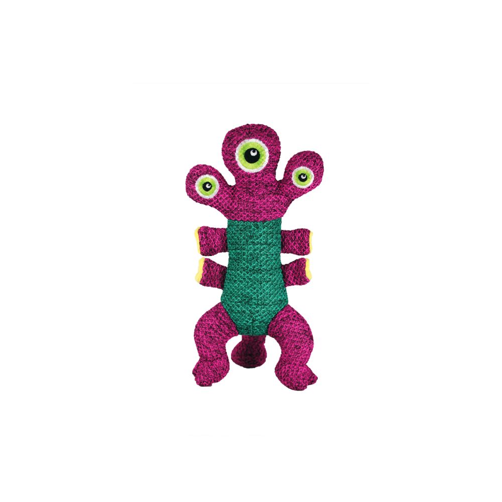 KONG Woozlesโ unique texture and shape are ideal for natural shaking instincts. These space age characters are sure to delight dogs and the reinforced material is ideal for long-lasting indoor play sessions. These adorable alien buddies have multiple squeakers to keep dogs engaged for long bouts of healthy exercise.