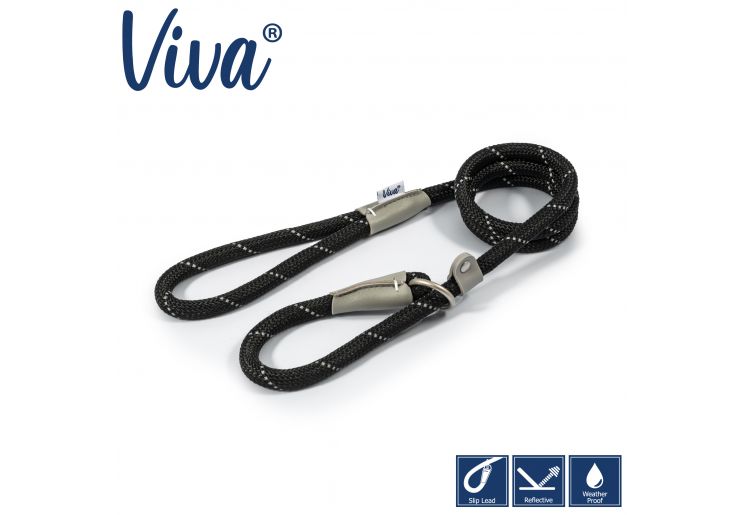 Made with durable poly-weave webbing, perfect for walks and swimming, this slip lead features a leather adjuster for fit, leather finishings and reflective weave. It is lightweight and weatherproof