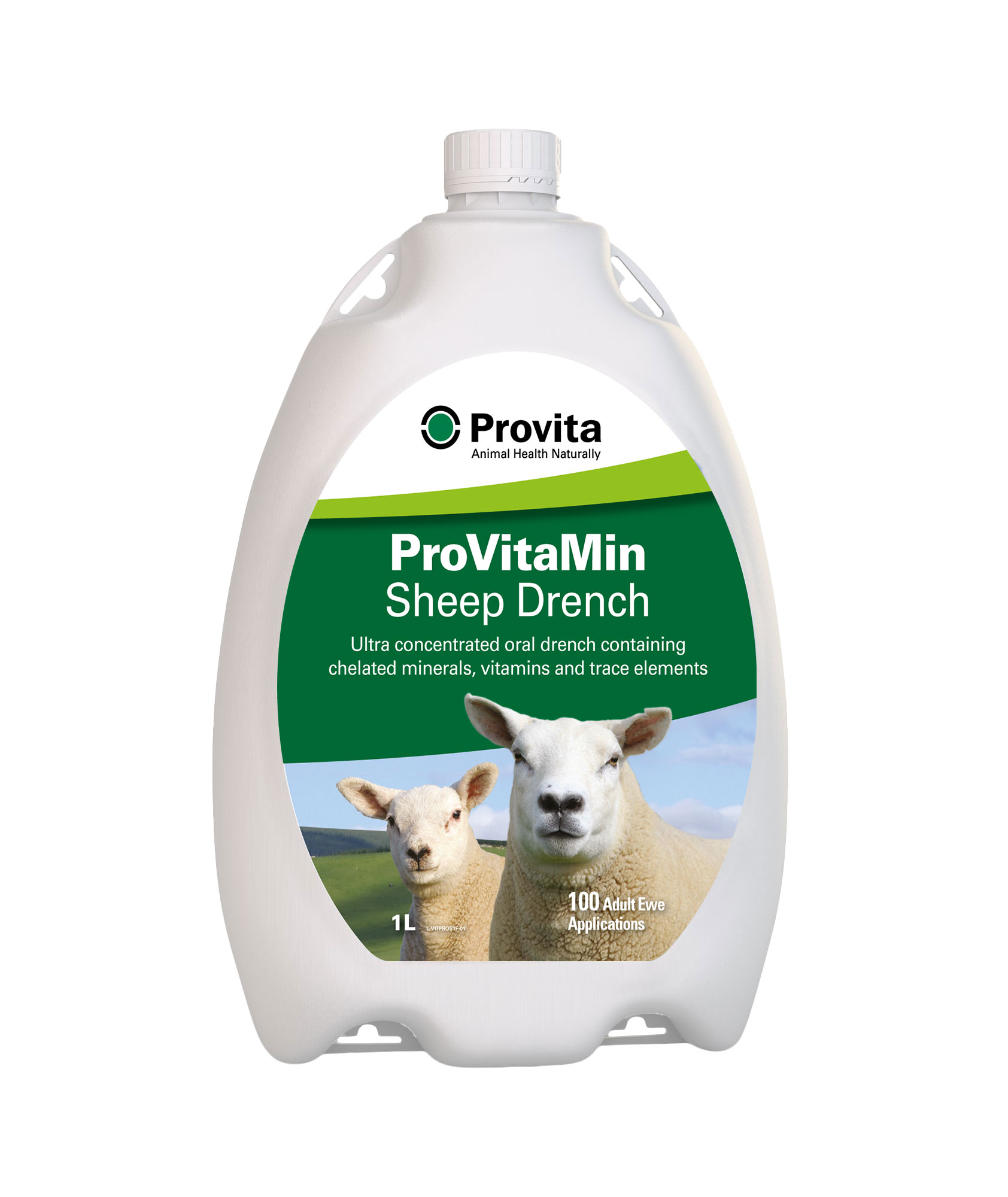 ProVitaMin is an ultra-concentrated oral drench containing 24 broad spectrum elements to improve performance in sheep. ProVitaMin provides a concentrated blend of chelated minerals, vitamins and trace elements ensuring maximum bioavailability for fertility in ewes and thrives in lambs. Highly concentrated formula, 10ml application for an adult sheep.
