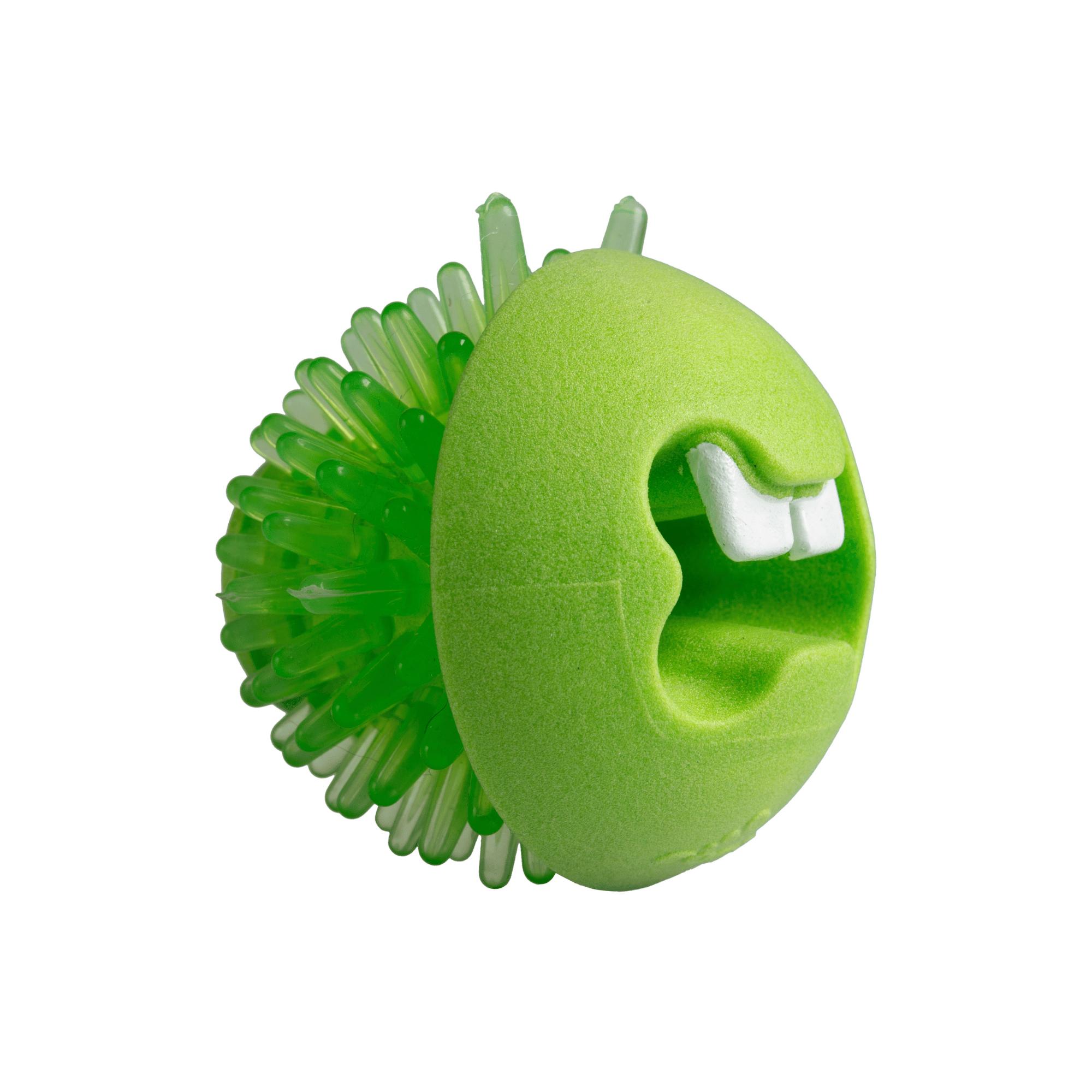 Rogz Fred Treat Toy is a fun and versatile, bounce and fetch ball with two cavities that can hold different-sized treats. Gum massaging technology takes care of your dogโs dental hygiene, while its odd shape and rubbery material give it an erratic bounce to keep your dog entertained.