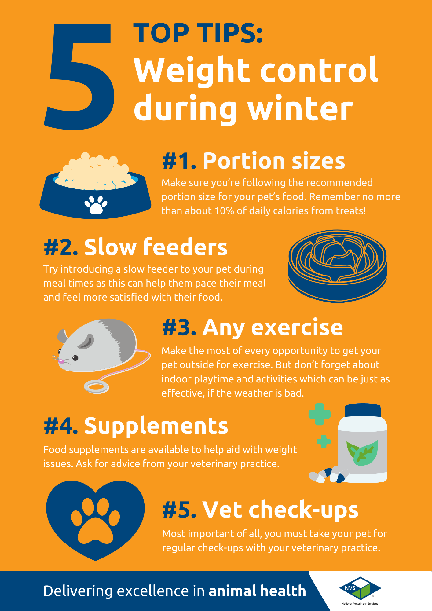 A key aspect of seasonal healthcare is weight management. This is especially tricky during this time as pets need more energy to regulate their core body temperature, but at the same time, their activity levels tend to decrease due to the cold weather and fewer daylight hours. Closely linked to this is joint care, with the cold weather also exacerbating any joint pain and stiffness.