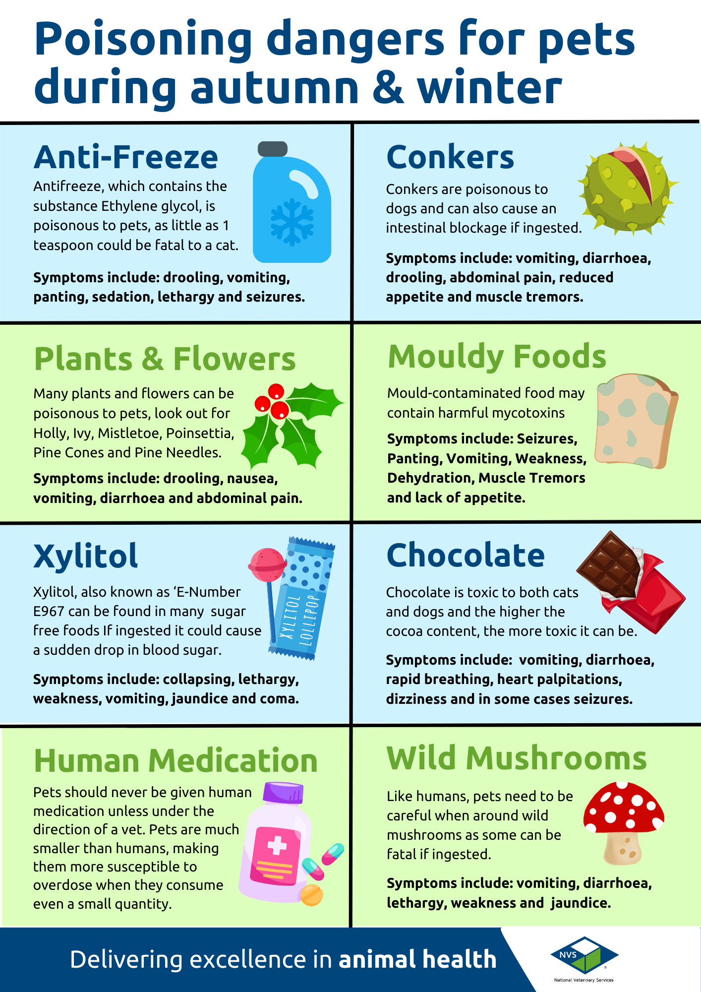 Autumn & winter are key seasons for pet poison awareness and a challenging time for your pet owners to ensure that they’ve pet-proofed their homes and avoid any potential risks.